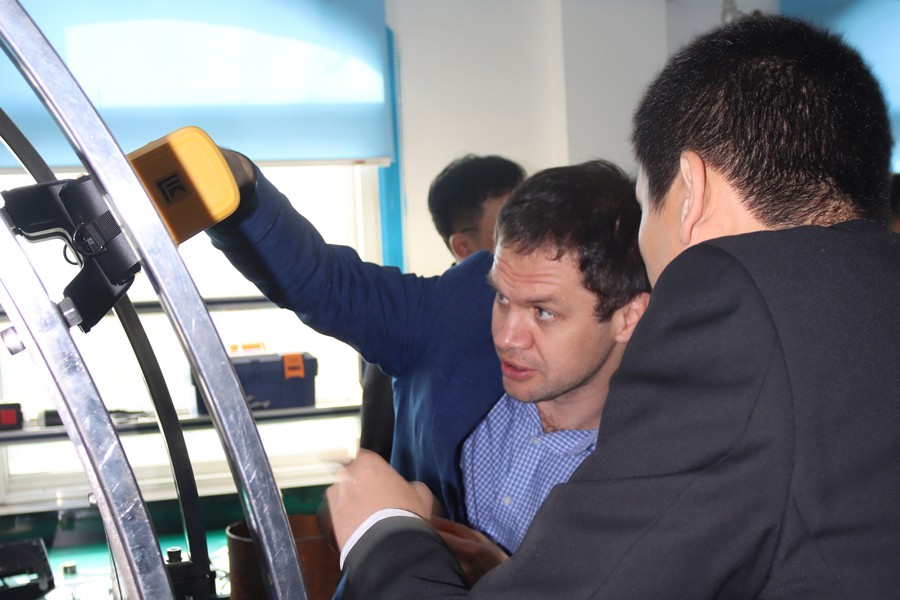 Denis先生先后參觀了我公司無塵車間、實驗室等,對我公司自主研發的無線式磁粉探傷儀、管道磁粉探傷儀、角焊縫磁粉探傷儀等設備進行性能測試,均達到預期效果,并對我公司研發、生產及售后能力給予高度肯定。
