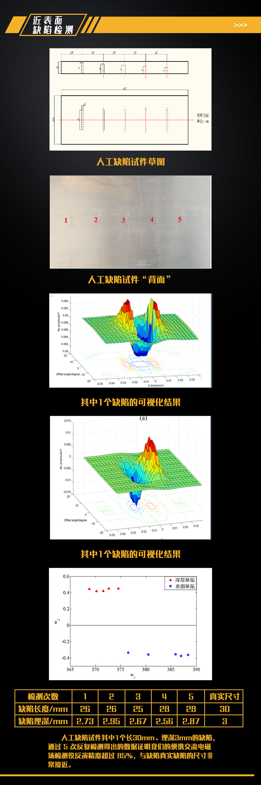 1、交流電磁場檢測技術適用各種導電體材料,主要用于鐵磁性或非鐵磁性材料對于表面或近表面的缺陷可以快速準確的檢出;