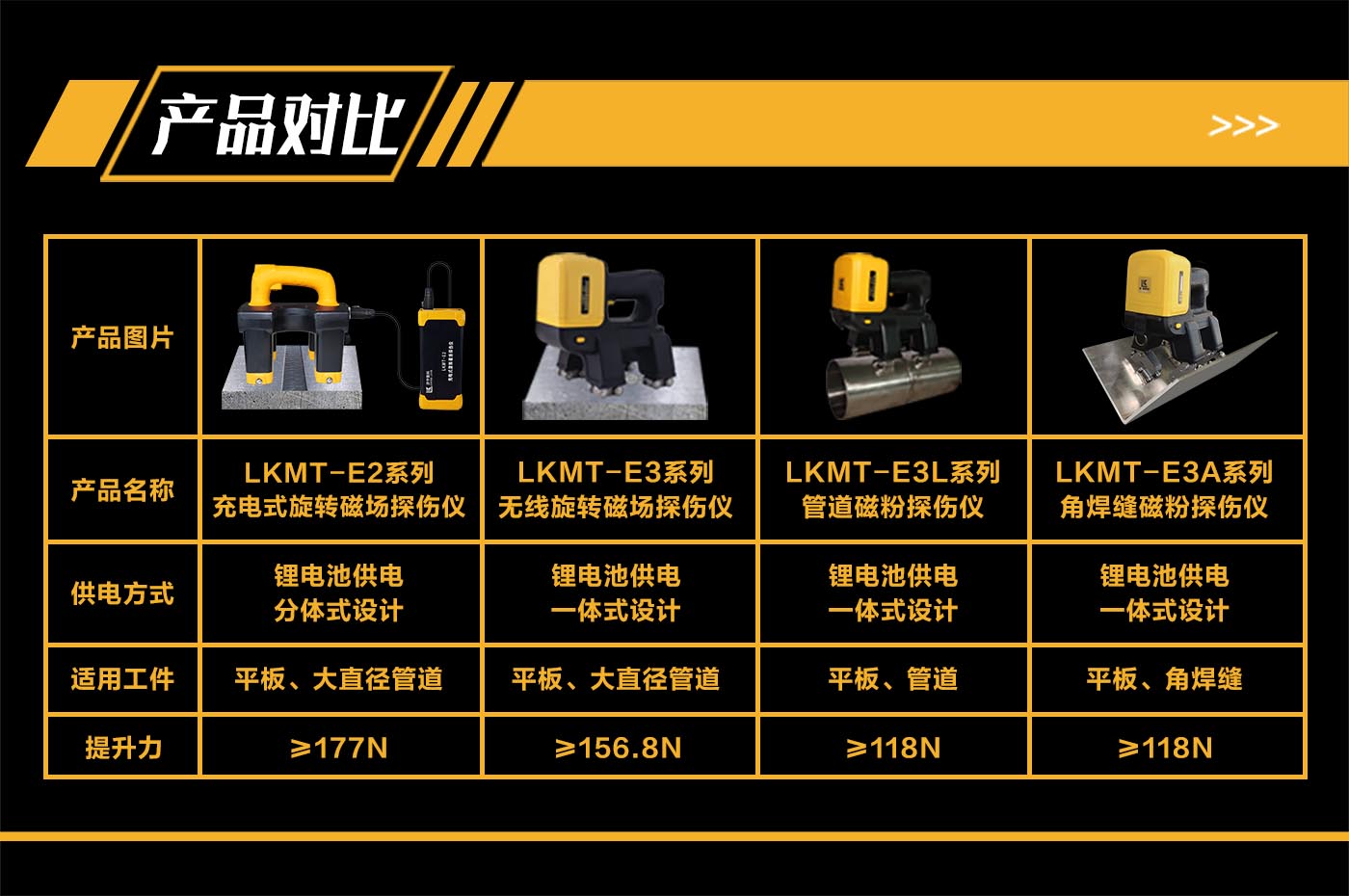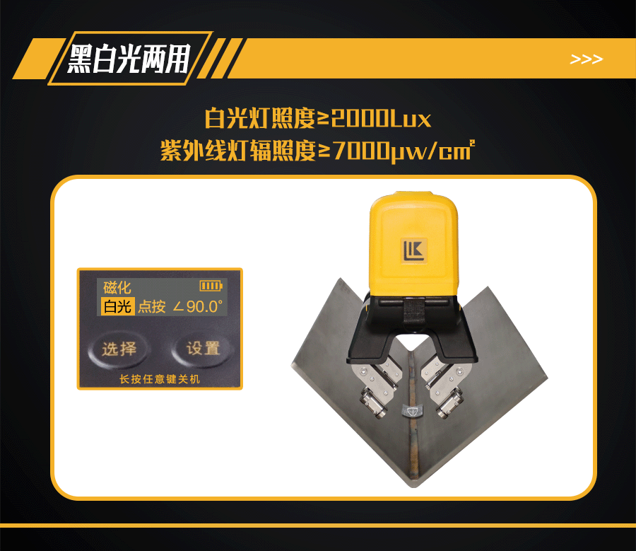 1、LKMT-E3AS一體式旋轉磁場角焊縫磁粉探傷儀,探頭與鋰電池一體式設計,無需使用線鏈接;