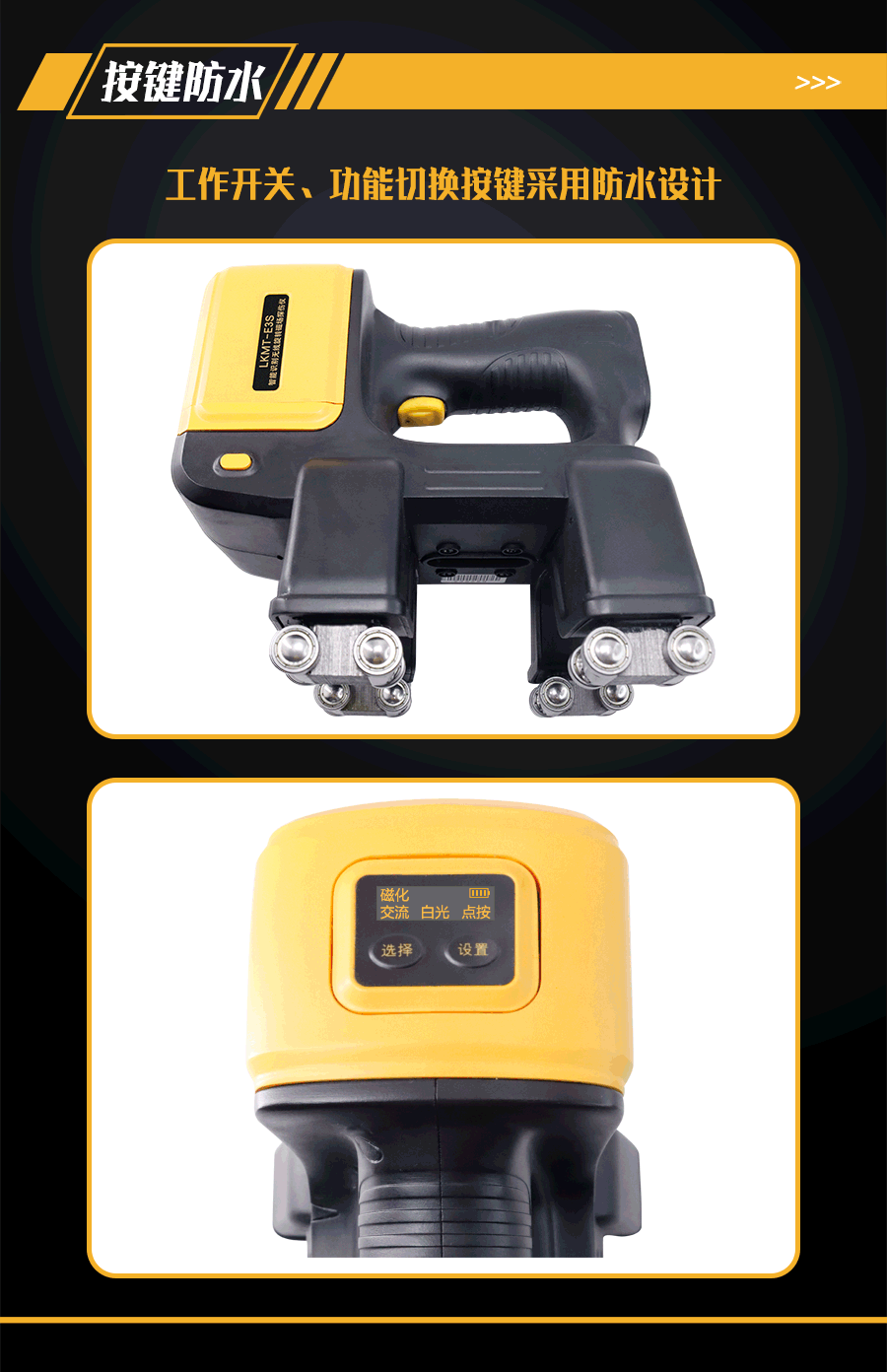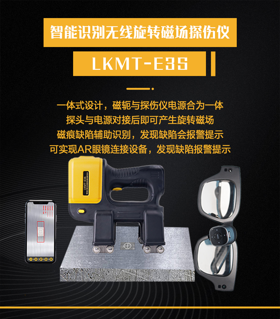 1、LKMT-E3S一體式旋轉(zhuǎn)磁場探傷儀,探頭與鋰電池一體式設(shè)計,無需使用線鏈接。