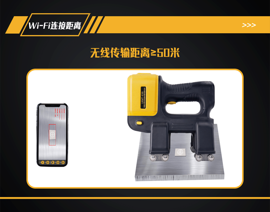 9、探頭內(nèi)部裝有500萬像素攝像頭,手機、平板電腦或AR眼鏡等手持終端安裝APP軟件,通過Wi-Fi與探頭鏈接,手持終端實時顯示探傷狀態(tài)。